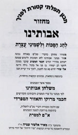 'מחזור אבותינו' זהו המחזור שהראשל"צ מרן הרב שלמה עמאר שליט"א מתפלל בו בחגים.